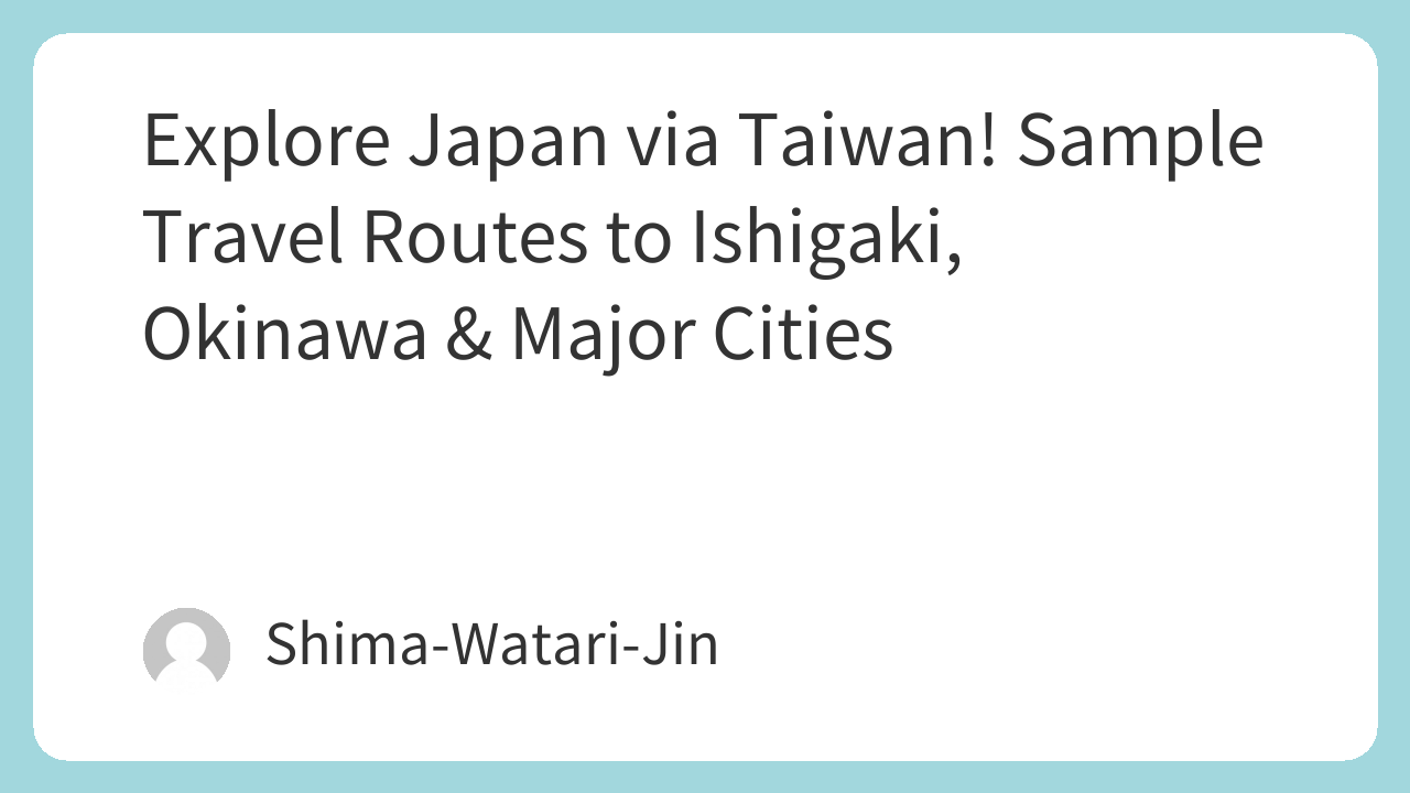 By transiting through Taiwan, you can create a unique itinerary that combines Ishigaki, Okinawa, and Japan’s major cities.