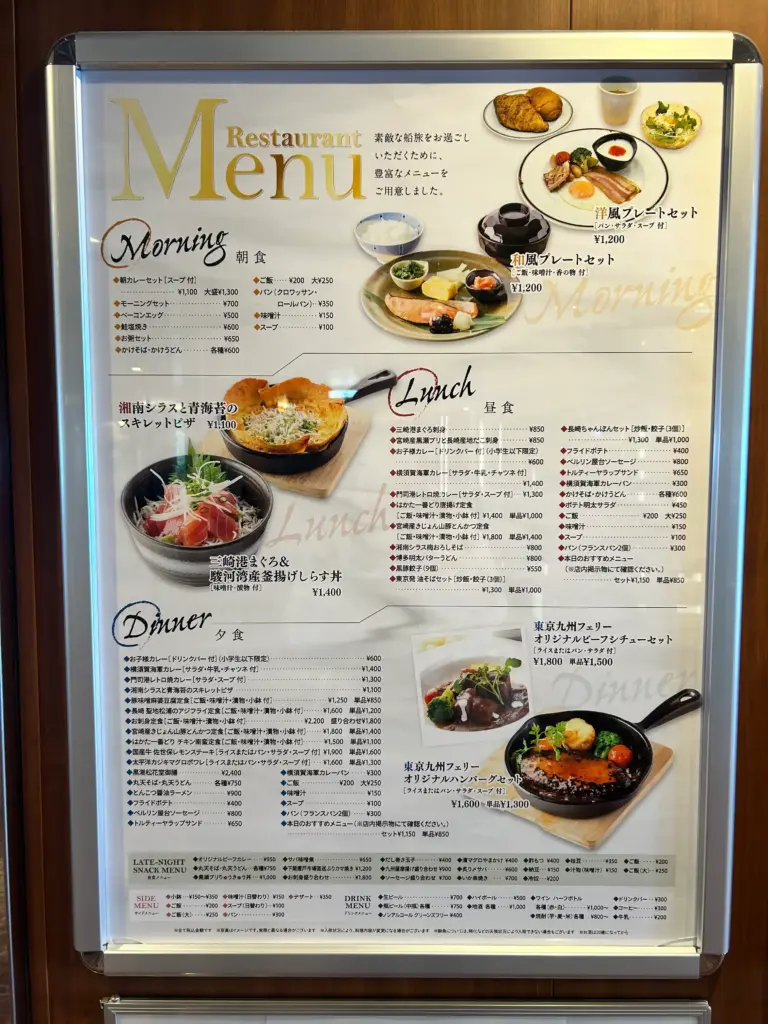 船内レストランのメニューは東京九州フェリー公式サイトからも確認できます。